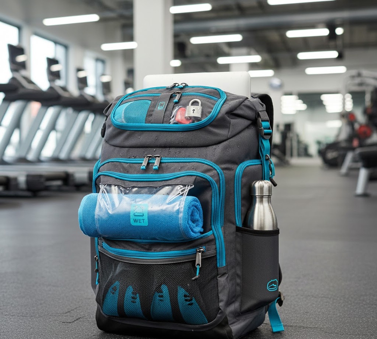 Это одна из самых важных функций, которая отличает профессиональную плавательную сумку от обычной спортивной. Отсек для мокрых вещей (wet compartment) – это отдельный карман с водонепроницаемой подкладкой, расположенный обычно сбоку или в дне рюкзака. Его задача – изолировать промокший от хлорированной воды купальник, полотенце и шапочку от остального содержимого сумки.