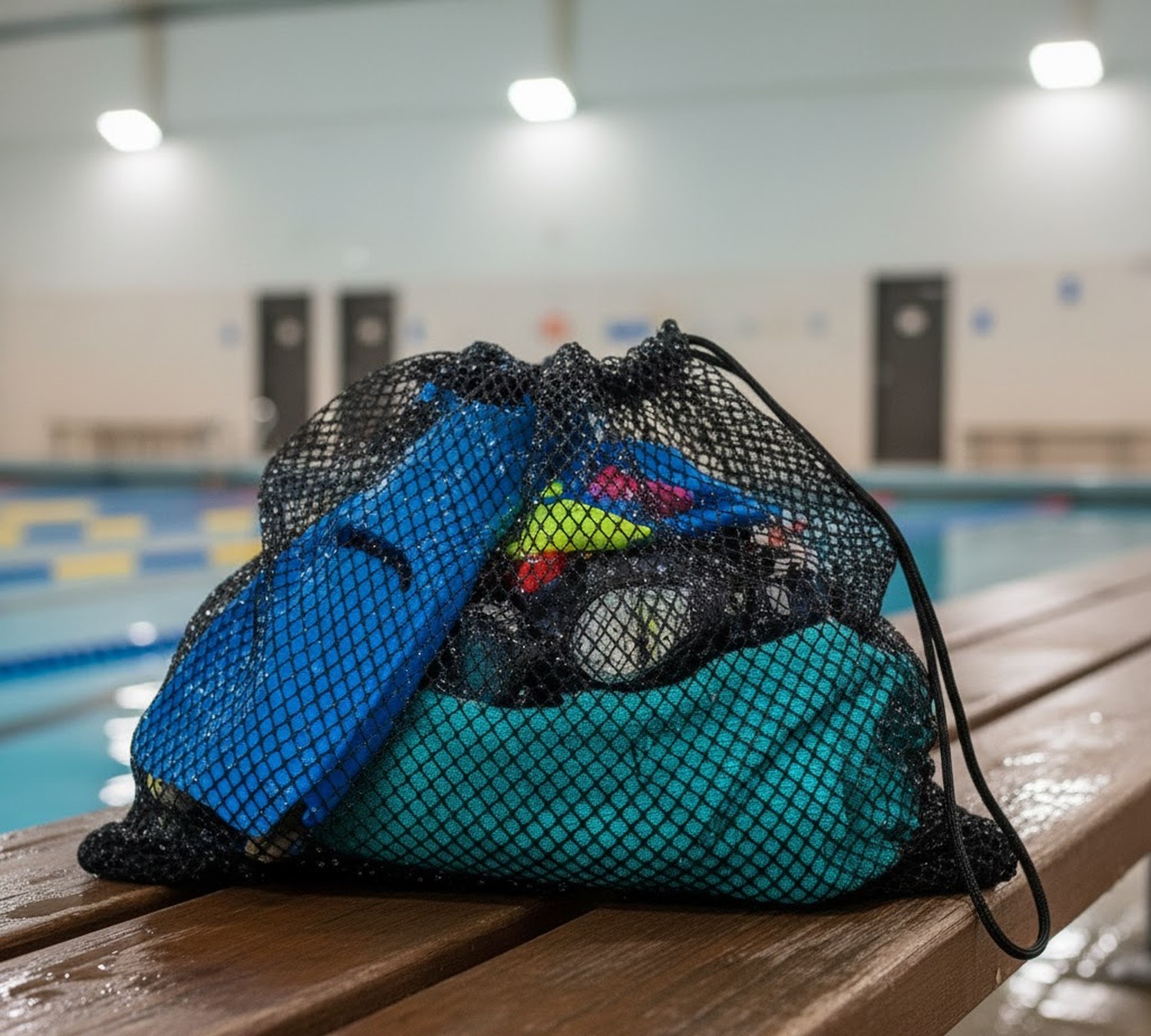 Сетчатые мешки часто используют пловцы, которые вывозят инвентарь на бортик бассейна во время тренировки – доски, буи, тренировочные ласты. После тренировки всё это кладут в мешок, и вода стекает прямо через сетку, не скапливаясь. Такой мешок занимает минимум места, легкий, и его удобно носить в руке или в другой сумке.