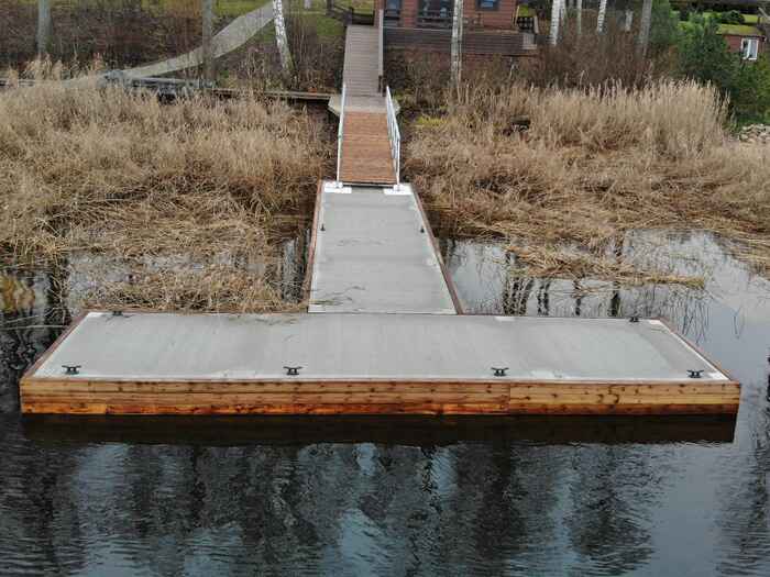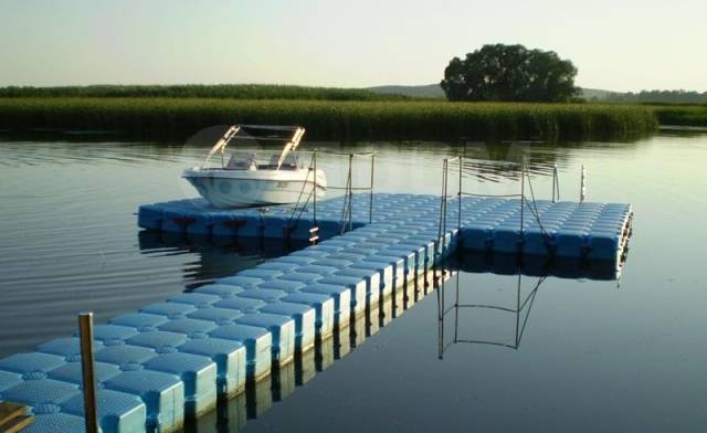 Плавучий причал (понтон). Это платформа, которая держится на поплавках и меняет свое положение вместе с уровнем воды. Плюсы: идеален для рек, простота установки, можно собрать своими руками, легко демонтировать на зиму. Минусы: качается на волнах, поплавки нужно проверять на герметичность, зимой понтоны часто вытаскивают на берег, чтобы их не раздавило льдом.