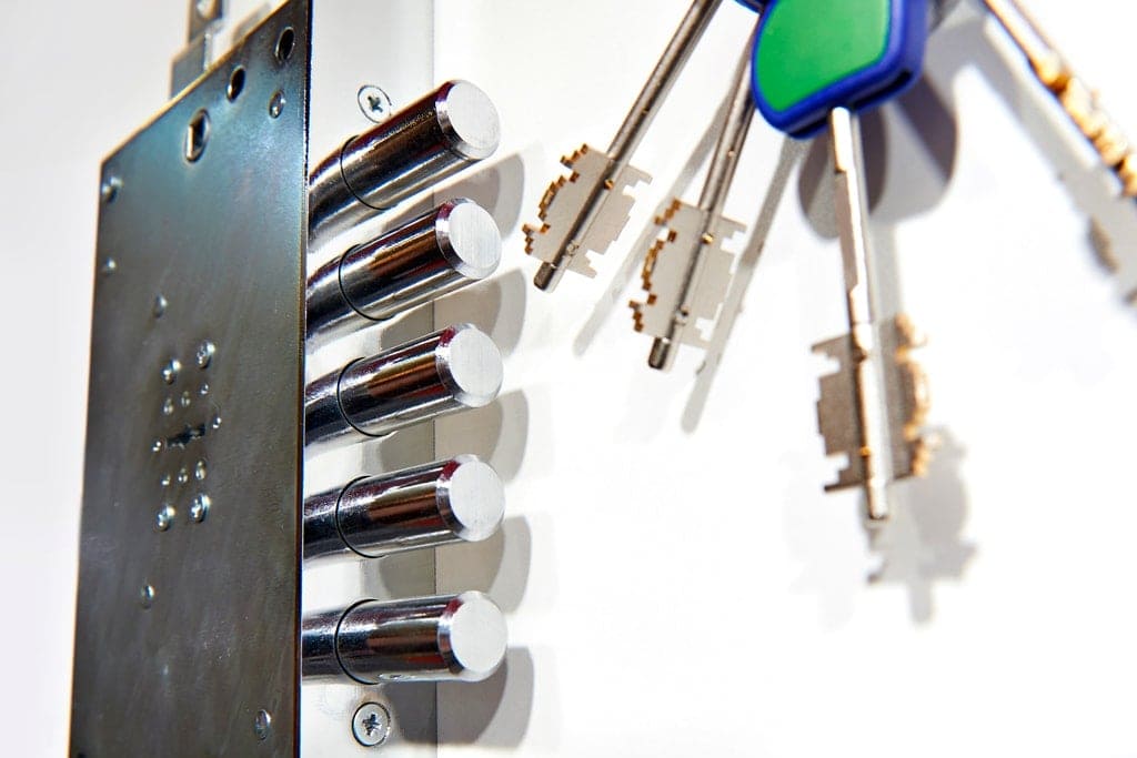 - Цилиндровые (пин-кодовые) замки — самые распространённые для входных и межкомнатных дверей. Вскрываются методом отмычек, бампинга или высверливанием цилиндра. Профессионал может открыть такой замок без повреждений за 5–15 минут.