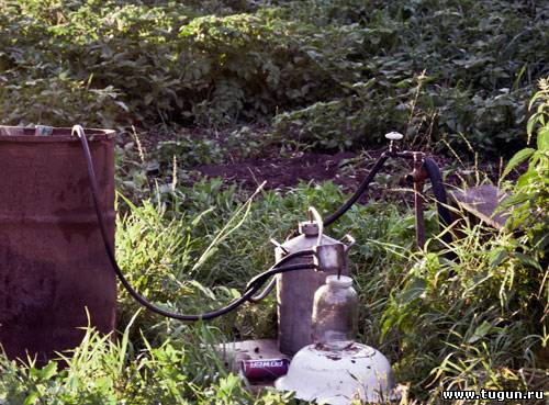 Чувствуется - человек дело знает. Сидели у аппарата почти до 3-х утра. А как иначе - кругом деревяшки 100-летние - а тут газ (кстати - 2 баллончика не сожгли). Самое главное при поступлении первых капель продукта сбавить накал и не форсировать процесс. Вот так - капля за каплей... Какчество - понимаш.