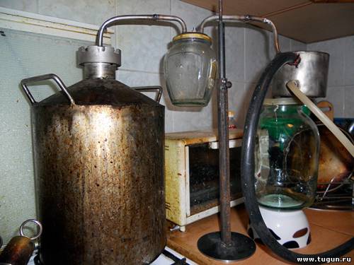 Спиртосодержащий пар по трубке 7 поступает в сухопарник. Здесь происходит частичная конденсация и на дно оседает часть сивушных масел. А лучше набрать это слово "сухопарник" - откроется паровозо-самогонный мир.