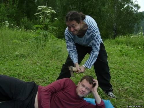 Дошли за час, с грехом пополам, ибо, несведующий в акробатических номерах (с надувной лодкой за спиной) Виктор Николаевич был благополучно этой самой злосчастной лодкой придавлен Дошли, значит, разбили лагерь, как положено - употребили напитков за единение с природой, обустроили быт, разгребли свинарник, оставленный предыдущими постояльцами и с чистой совестью приступили к активному отдыху.