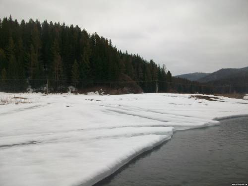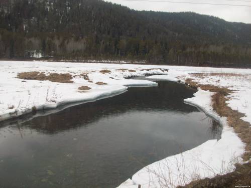 Это не р. Мана, это один из малых притоков Енисея недалеко от Красноярска. Съездили на разведку убедиться в справедливости утверждения о том, что речка вскрылась. Увы, не вскрылась, но вода уже прибывает и идет поверху льда.