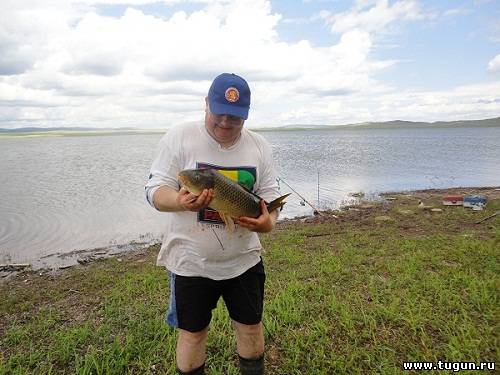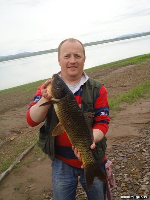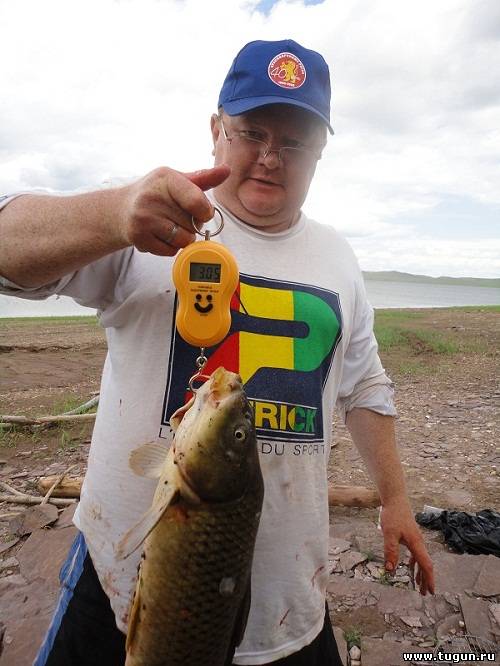 Продолжу. На утро занялись тем - зачем приехали. Начали рыбачить. Лещ брал очень хорошо. Самый крупный около 1 кг. Брал только на червя. Ветра, практически, не было. Да и вообще погода была нормальная . Резко перестали клевать лещи. Мы (нас всего было двое, я и самый старший брат) пошли в палатку перекусить. Затем - я такое слышал только по рассказам. На одной из удочек зазвинела шпуля на катушке. Смотрим на берег. Это надо было видеть и записывать на камеру. О чем предупреждал меня старшой накануне (привязывать на всякий случай удочки)- практически случилось. Удочка со свистом шпули балансировала на рогачке. Я рванул к берегу и начал тащить, не зная что там "на другом конце провода". Надо сказать, что тащил я не долго. Это был сазан. Вес 3050гр. Мой первый сазан в жизни. Крупнее я не ловил, т.к. всю жизнь любил рыбачить на лёлкую поплавочку и такие крупные экземпляры мне не попадались. старший брат на взвешивании . Ну и мне надо было кончено запечатлеться . Ну и как и Гришковца: "Настроение улучшилось". Саня меня спрашивет - что теперь с ним делать? А я через некоторое время спросил - что теперь с ними делать? Были пойманы ещё четыре штуки, но заметно меньшего веса. Решили 3х отпустить, т.к. не знал я - как их хранить в таких условиях. Наши садки не походили для их хранения в воде .