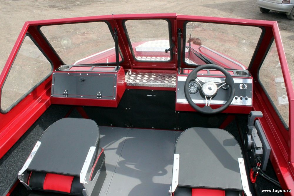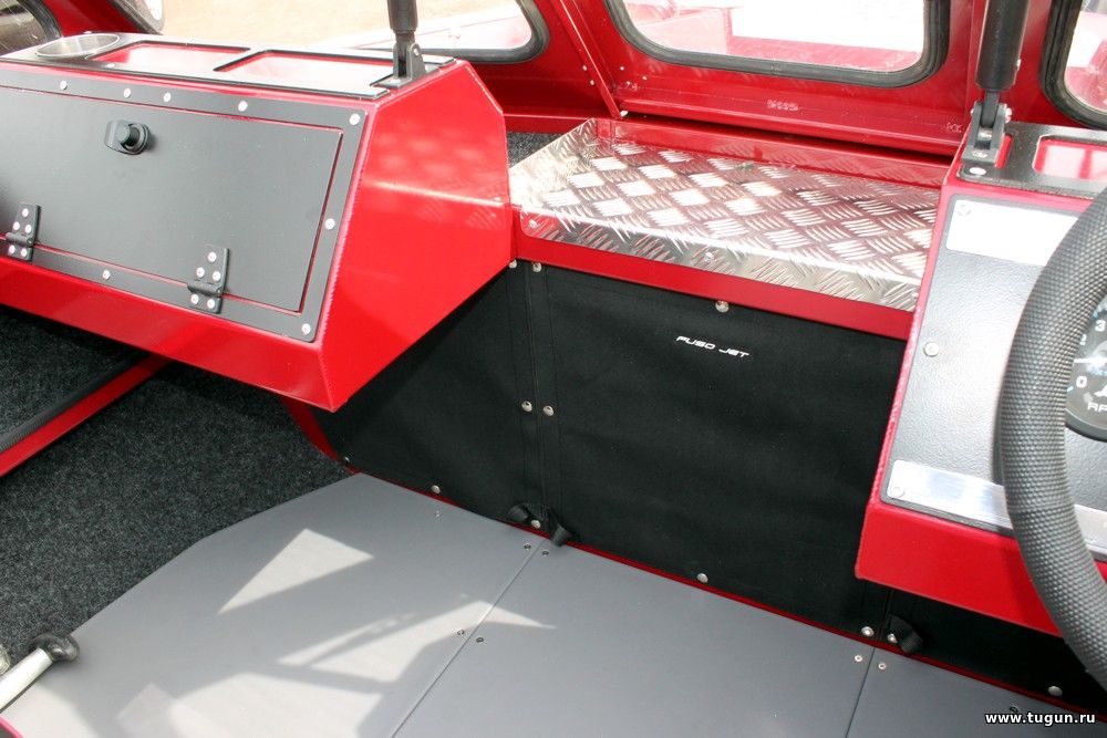 Здравствуйте уважаемые друзья форумчане! Выделю отдельную тему под новое направление: Моторные лодки FusoJet под подвесные лодочные моторы. Верфь маломерного судостроения "Фусо Джет" объявляет о начале производства новой линейки моторных лодок под подвесные лодочные моторы. До недавнего времени основным и единственным направлением деятельности нашей компании являлось изготовление водометных катеров. Не забывая о накопленном опыте на протяжении многих лет и применив все свои знания и умения нами была спроектирована моторная лодка под подвесной лодочный мотор. Столкнувшись с новым направлением деятельности, работа по проектированию была увлекательна и нова для нас. В новых моторных лодках Fish были применены как классические технологии изготовления моторных лодок так и внедрены наши наработки при проектировании водометных катеров. Новым моторным лодка Fish присущи такие характеристики как: прочный силовой набор дна, оригинальное решение по установке мотора, очень удобные и уютные места водителя и пассажира. В кормовой части моторной лодки Fish-4819 имеются объемные ниши для размещения всевозможных вещей, помпы, АКБ и тд. В базовой комплектации моторные лодки Fish выпускаются с передней консолью в которой установлены "нормальные" настоящие стекла из триплекса, что существенно отличает моторные лодки Fish от лодок других производителей. Наличие лобового остекления позволяет без проблем устанавливать стеклоочистители. Также в базовую комплектацию включены два мягких складных сидения установленных на рундуках. Слани (полы) выполнены из фанеры 12мм и покрыты специальным покрытием, и это также включено в базу выпускаемых лодок Fish. В виде дополнительной опции предусмотрен комплект стационарного топливного бака который может быть выполнен в двух вариантах: 60 литров и 130 литров. Топливный бак устанавливается в центральной части моторной лодки. В комплект топливного бака входит: - топливный алюминиевый бак, - датчик уровня топлива; - указатель уровня топлива на панель приборов. Хотелось бы отметить, что в моторных лодках Fish предусмотрена съемное лобовое остекление, что очень Важно при транспортировке лодки в транспортной компании. Окончательная сборка на месте очень проста и понятна. Все отверстия подготовлены, и подогнаны. В носовой палубе имеется небольшое углубление, что позволяет уверенно себя чувствовать при осуществлении рыбной ловли с носа лодки. Также углубление на носовой палубе позволяет удобно размещать всевозможные грузы для их перевозки. В носовой палубе имеется люк для доступа под палубное пространство. Носовой рундук получился просто огромный ! Доступ к носовому рундуку имеется также и из кокпита. Корпус катера окрашен что имеет свое практичное и эстетическое преимущество.