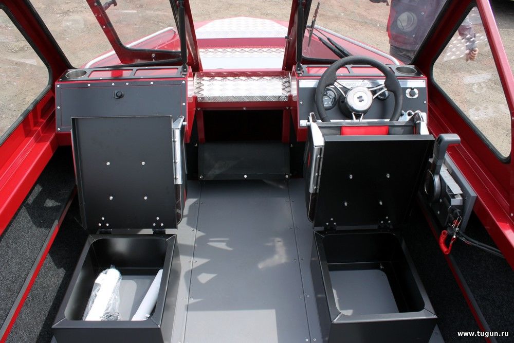 В базовой комплектации стационарный топливный бак, указатель уровня топлива на панели приборов, габаритные огни, выключатель массы, трюмная помпа.