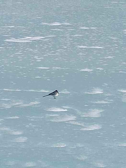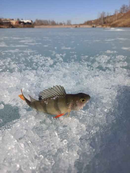 Окунек поклевывал слабо, по одному-два с лунки, да и то не с каждой. Максимум выхватил с пяток, сегодня это уже была раздача biggrin Периодически ко мне подлетали прибывшие на днях трясогузки, чем радовали мой глаз. Заметил, что на этом пруду весенний лёд имеет интересный тёплый бирюзовый оттенок. Совсем чуточку, но что-то есть.