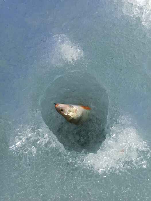 Рыбачил вчера, с обеда пару часиков на пруду Придорожный, как написано на Яндекс карте. Видел в камеру неплохих карасей, окуней и рака. Народ уже сидит, лёд сантиметров 8. В общем, вчера изловил немного.