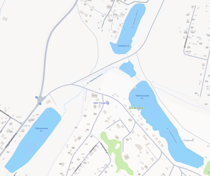 А пересыхало, так называемое первое озеро. Оно по весне наполнялось талыми водами и к началу-середине лета исчезало. Располагалось оно в самих дачных массивах.