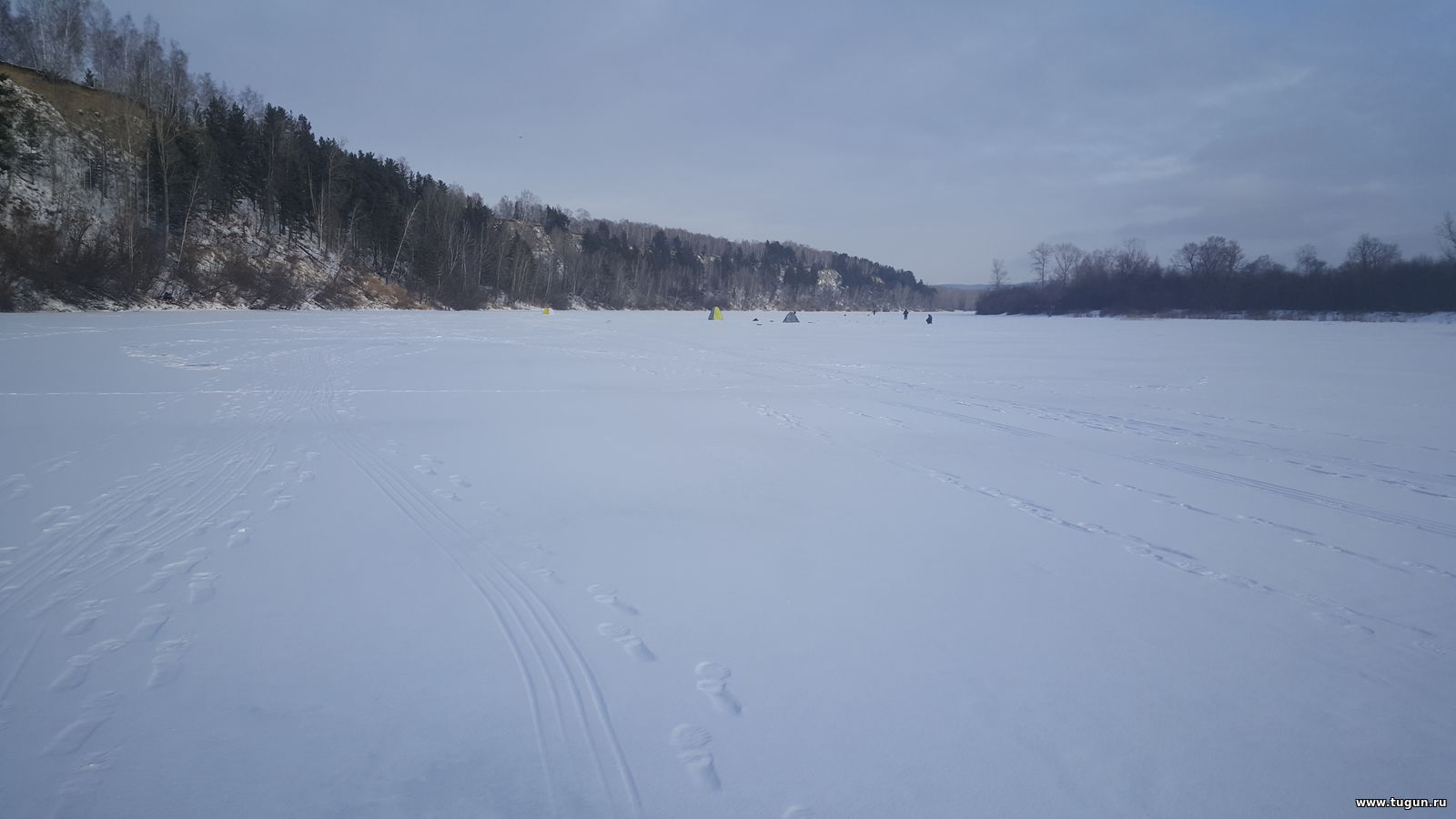Проехали по левой стороне, на сколько есть возможность, а там уже машин девять стоит, снегом припорошенных, значит народ с раннего утра отдыхает. Припарковались, собрались, пошли, идти не много, меньше км. Дошли, там кто в палатках, кто в свободном передвижении, а кто и у костерка греется на берегу: