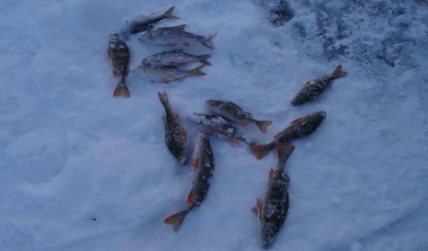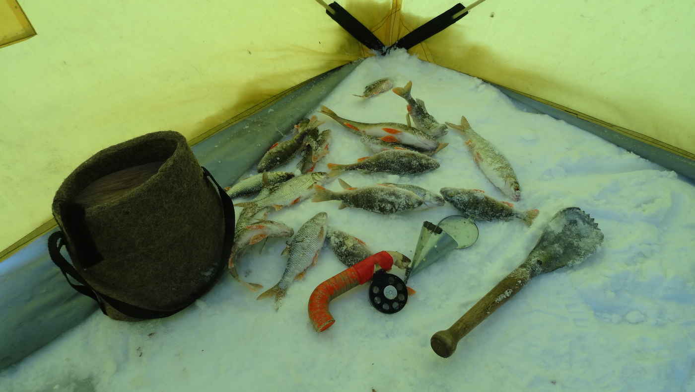 Не знаю, отдал в пакете рыбакам, при выходе со льда. Ездил катать самопальные мормыхи, сороги в морозилке с лета достаточно.