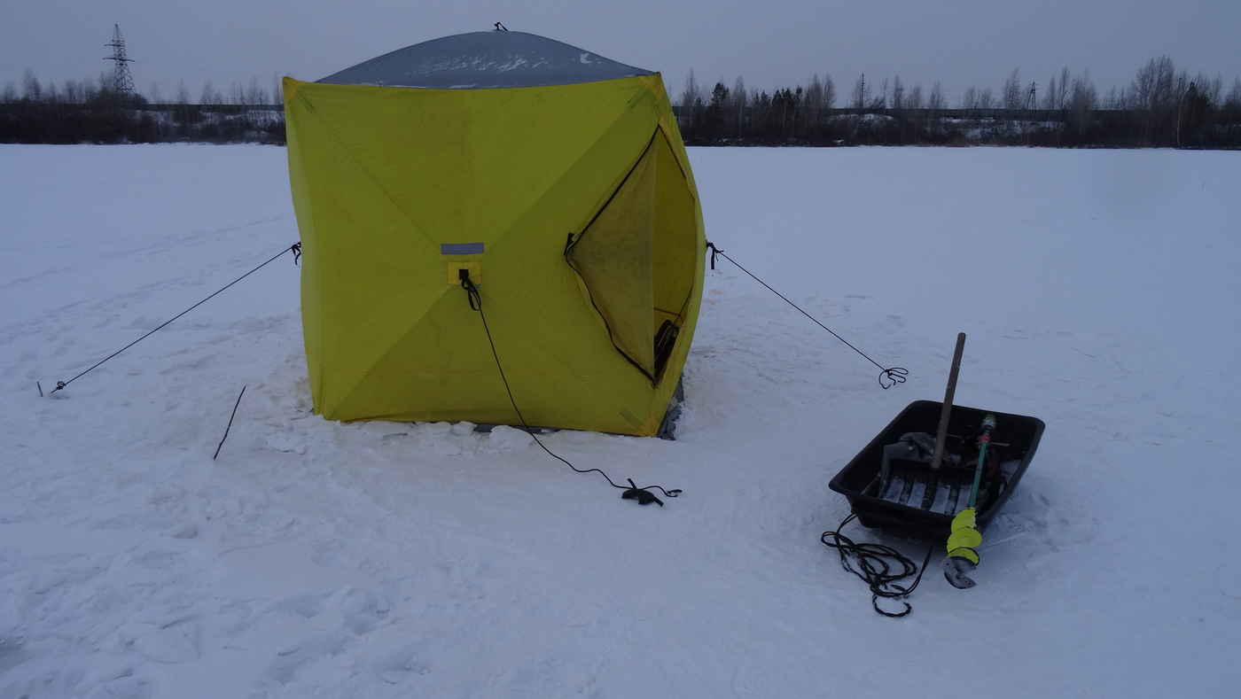 Напутствие "Рыбы не надо. Счастливого пути"! Выехал пораньше и зря. Кроме сложностей в дороге, ни каких преимуществ! К рыбалке подготовились по "фен шую". Малый карьер.  Палатка, дуршлаг из лунок, прикормка из каши, мормыша, манки. Наживка мормыш, мотыль, опарыш, сало. Снасти мормышка "шарик" 0,4 грамма, коромысло, мормышка Муравей с дополнительным крючком на подвеске. В палатке даже без отопления комфорт. С утра начал клевать окунь. От сороги ни каких признаков. Пока не запутал леску. Пока распутывал попалась и сорога на глубине в метре от дна. Хитрая, со дна не желает клевать! Подняли снасть на метр. Начались поклевки. Поиски с деланием "дуршлага" толку не дали кроме 4 окунишек на жерлицы. Жерлицы промолчали весь день. Снасть коромысло и вообще неподвижную насадку рыбы игнорировали напрочь! В итоге десятка два рыбов и отличное настроение! Настроение добавили крупный окунь и какая то крупная рыба , которая после борьбы помахала рыбакам хвостом. Перерыв на неделю до следующего потепления.