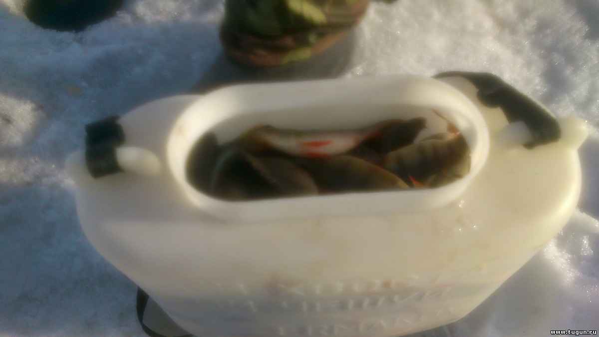 Бодрого времени суток всем! Весна идет! В субботу ездили на Парное. Результат плачевный. Кое как добыли на двоих с супругой полтора десятка окушков и все. Малость побуксовали. И не только мы. Пузотеры встревали сплошь и рядом. Обиделись конечно, предполагался хороший клев, но увы.. Решили что в воскресенье поедем на БВХ, возьмем так сказать реванш, но ... Утро воскресенья началось у нас бодренько, с 7:00. Не спеша собрались, не спеша упаковались, куда спешить? До водоема езды 10 минут. Не спеша. По пути заехали пополнить запас мормыша, со вчерашнего оставалось, но маловато. Разговорились с продавцом, скучновато ему сидеть, основная масса покупателей уже прошла. Куда собрались, где были, а вчера говорят на Парном сорога клевала дуром шла.. Да врут все, не было такого и в таком духе. Сейчас то куда собрались? Да на трубу. На трубу??? Тут продавец аж сник. Да езжайте лучше на Цинголь, хоть отдохнете, жена порадуется, окуньков половит, сделай женщине приятное. Я задумался. Приора, это вам не нива, а на Цинголь асфальта никогда не было.. Но продавец был настойчив, я расскажу дорогу, там на любой иномарке, хоть боком.. И я дрогнул. А давай! И мы поехали, на Цинголь. Дорогу нашел без проблем, почти. Чуток плутанул по деревне Усть-Парная и лесом, лесом, почти 5 км лесной, довольно хорошо накатанной дороги, но в одну сторону. Если вдруг встречка, как разьезжаться? Даже не знаю. Снег довольно глубокий. Но доехали, без проблем. Маленько смутил сьезд на лед. Крутоват, и в рытвинах, но машины на льду есть и разнокалиберные, значит и нам можно. Сьехали, встали где понравилось. Сходили в гости к ближайшим рыбакам, пообщались, обменялись мнениями и пошли устраивать свой лагерь. Попутно отмечаем что рыбка ловится, хоть и не крупная, но стабильно. Подогреваемый азартом и весенним, теплым утренним воздухом, который просто пьянит, быстренько готовлю первую лунку. Кормушку мормыша в дно, заодно промер глубины, хм.. 6,5 метров. А вроде и от берега не очень далеко. Опускаем удочку... Что такое? Опускаем же удочку!! Не тонет мормышка.. Дергаем, а там уже кто то есть.. Во дела.. Окунь уже висит. Снимаем, опускаем опять. Передаю удочку супруге и.. дело пошло! Есть рыбалка!