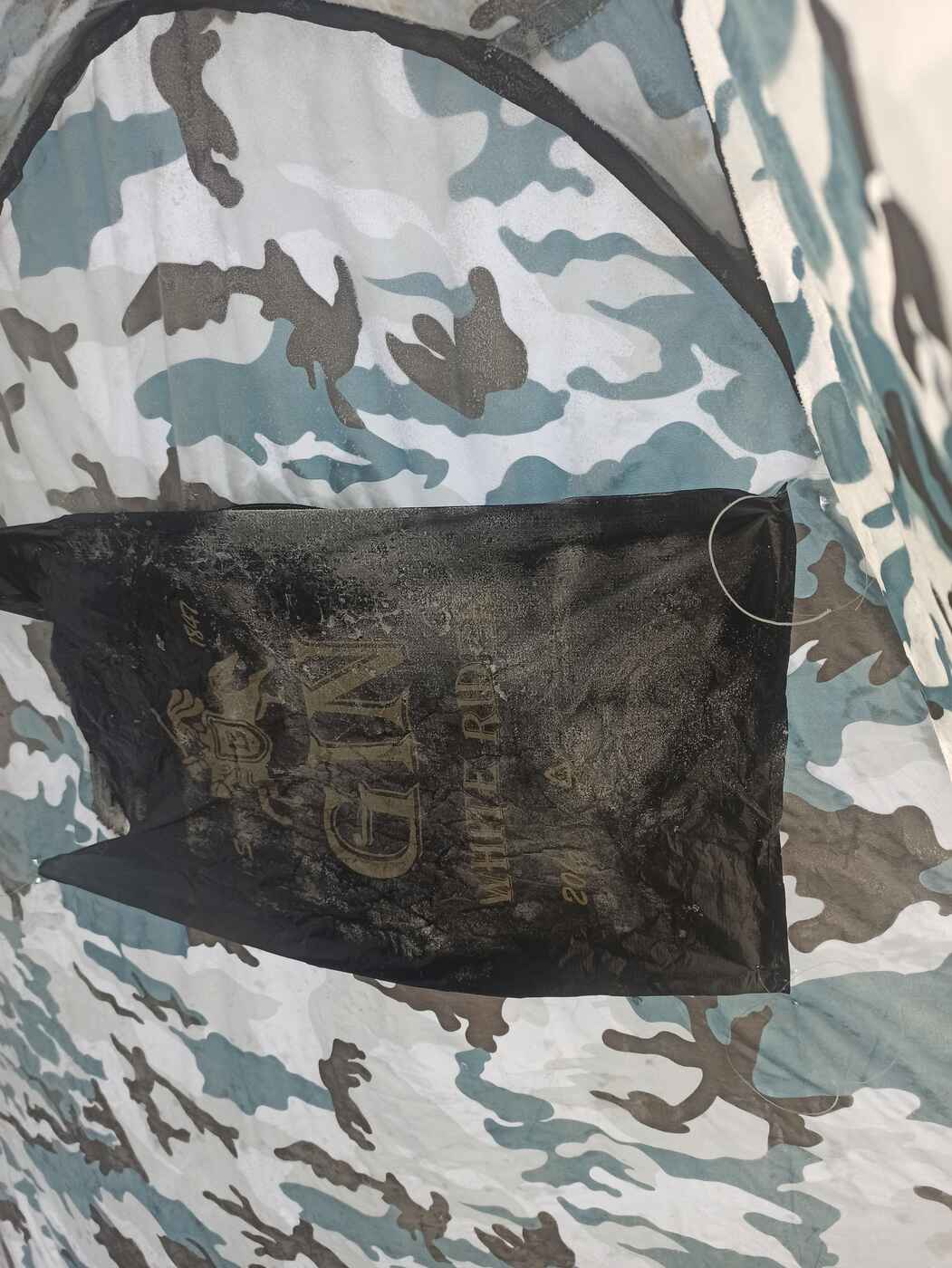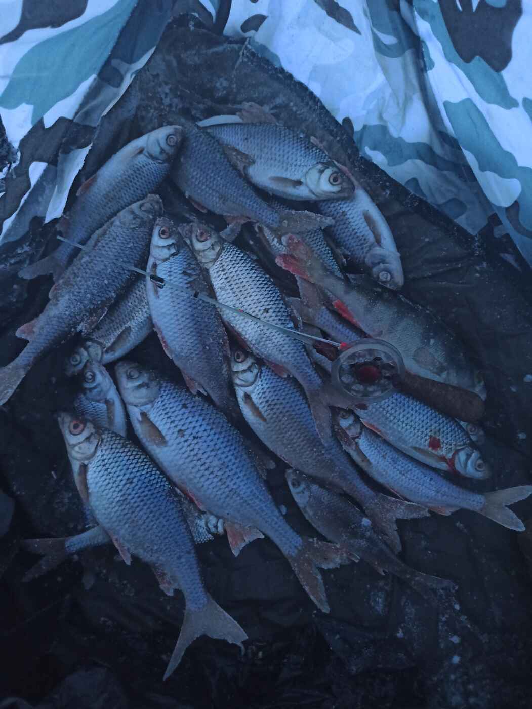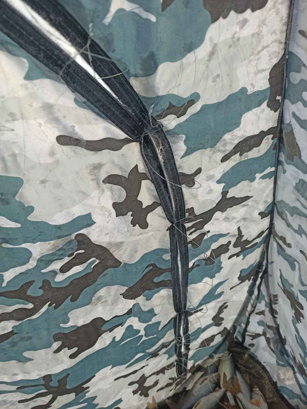 Сказано-сделано, но приключилась со мной неприятность, точнее с палаткой. Я её после вчерашнего не просушил, пока шëл она смерзлась, стал раскладывать и на входной молнии повылетали бегунки, точнее сломались с корнем. Ладно, чтобы не замёрзнуть, я дверь заштопал леской с кормушки. Но потом при попытке открыть форточку собачка сломалась и на ней. А это уже была наветренная сторона, и дуло в щель конкретно, тогда я растянул пакет и тоже на леску примастырил. Хоть как-то огородиться от пронизывающего хиуса. В общем, замуровался конкретно. хорошо, что перед этими всеми делами я закормил лунки, так что, пока кумекал да штопал душу успокаивало то, что всё равно какое-то время ждать, пока рыба соберётся...