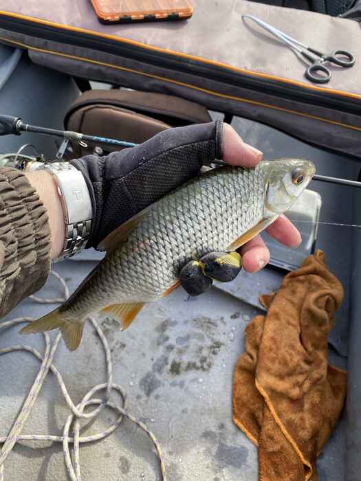 С 10 часов был на воде, небольшой ветерок. Лодок больше не было, только береговики. За фермой с первой проводки села неплохая сосрога, но пакет для рыбы забыл в машине, поэтому выпустил и пошлепал к берегу. Сорога исправно брала на середине, причем очень часто приходилось использовать пинцет, чтобы достать мормышку, вся отпущена, как и окунь. Карась попался приловом к сороге, его забрал... Лещи стояли на прежнем месте, но брали крайне осторожно, только на плавную игру около дна, зачастую выплевывали мормышку при подъеме к поверхности воды. Проехав вдоль берега напротив фермы, нашел окуней, но размер не впечатлил. Стояли очень локально, чуть в сторону заброс и в холостую. Очень пригодился подсак, полезная штука))) В 14 часов свернулся и поехал домой. Всем НХНЧ!!!