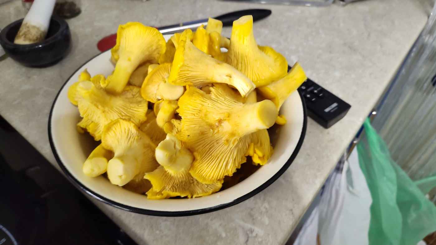 Еловая очередное посещение в итоге: вернулись с лисичками, опятами, чуть груздей и рыжик, маслят набрали пожарить на обед. Дома лисички в обработке и в очереди на обработку ( ещё один большой пакет )