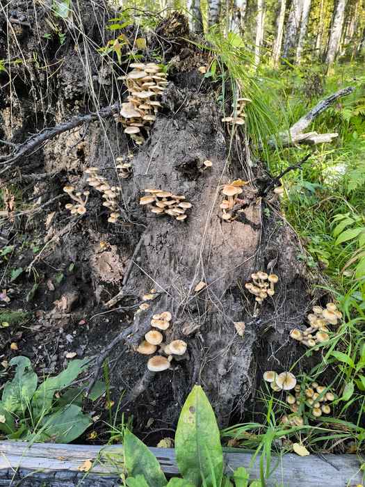 Опята пошли. Мы набрали. На трассе тоже опята и лисички продают.