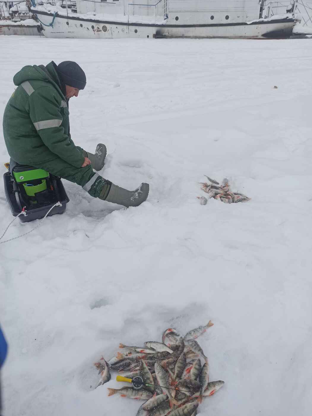 Да особого ветра вчера и не было на КВХ.  Погода была для рыбалки отличная. Столько машин и рыбаков как вчера я раньше на море не видел. Утром на шлагбауме Ледовой переправы очередь из 30 машин.