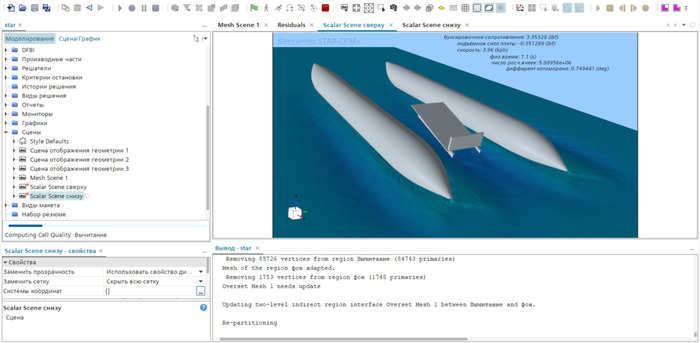 Нет. Минимальное кол-во расчетных ячеек и оптимизация по физическим моделям. Зависит от конечной цели, что мы хотим получить. Если всё и сразу, для дальнейшей сборки судна и за один расчёт, перекрёстное решение, можно и месяц считать на том же кол-ве расчётных ячеек и ядер.