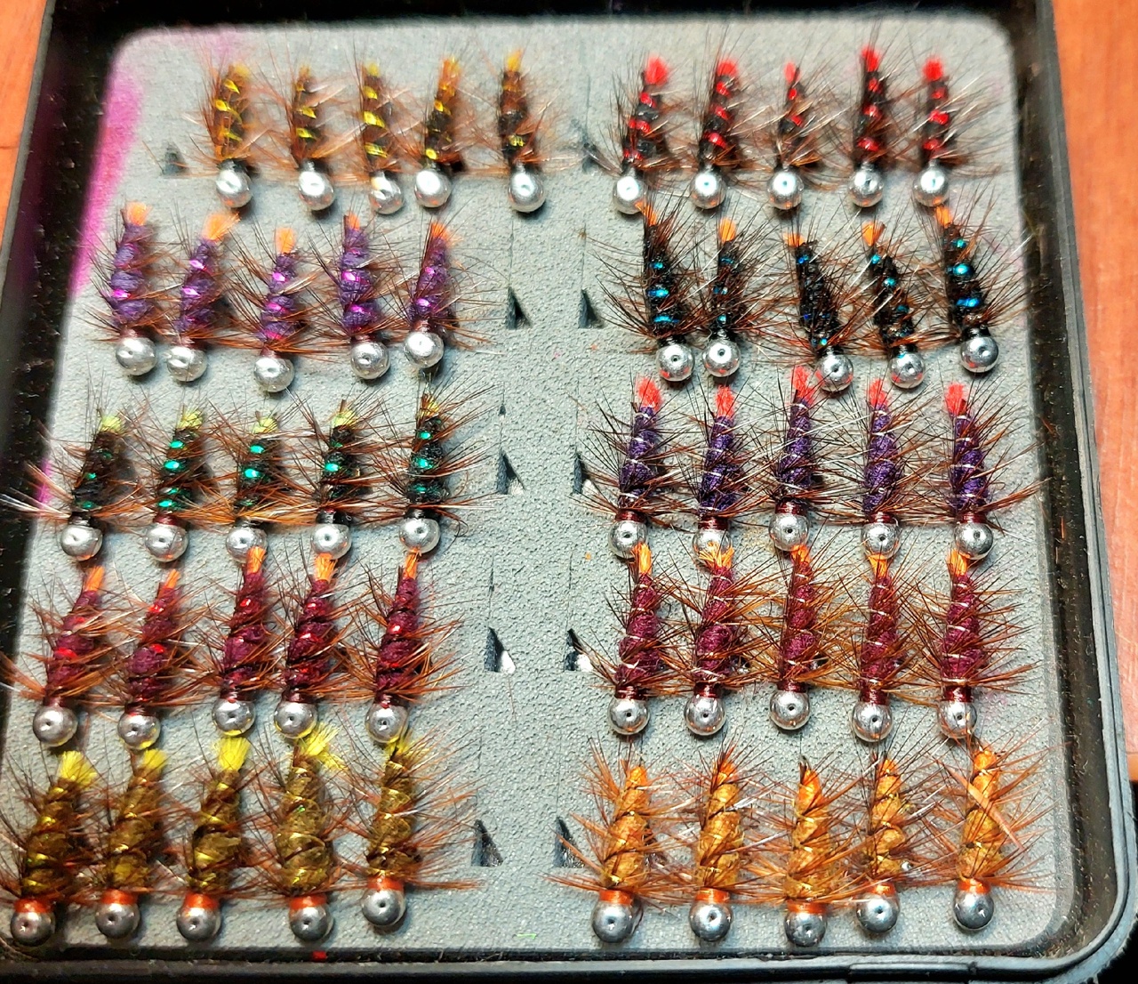 Мушки связал. Получился собирательный образ из всех, на что ловил когда то в Энхалук, Петрово, Бугульдейке и Ангаре. По цветам тоже старался охватить все основные и рабочие. И получилось! Хорошо отловились. Особенно была довольна жена одного из рыбаков. На фото самая уловистая мушка.