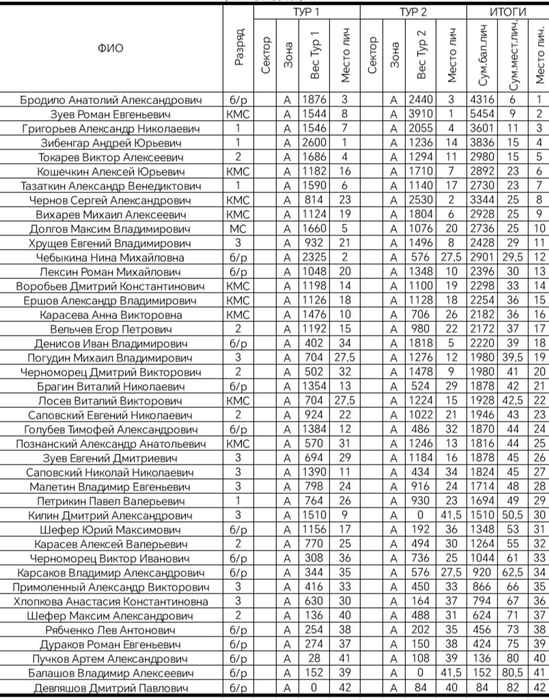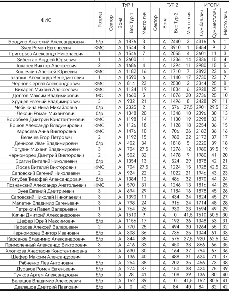 1. Бродило Анатолий г.Ачинск 2. Зуев Роман г.Назарово 3.Григорьев Александр г.Назарово 42 Участника
