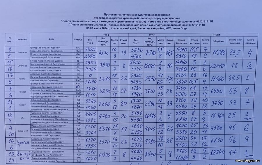 Ну вот и мы добрались до отчета с Кубка Красноярского края залив Огур 2024 5-7 июля .Хотелось бы сразу поблагодарить Федерацию Красноярского края ,организаторов,судей и участников которые приезжают показать свое мастерство за эти убойные выходные .Заезд на тренировки был ранний ,рыбку находили,ловили ,подобрали приманки ,на тренировках рыбка отзывалась очень хорошо ,в пт потренировались ,обозначили маршрут и задали цель на сходить с тактикой которая была наиграна уже без малого 5 лет .После жеребьевки получили хороший стартовый номер 9,золотая середина в двух турах .Долгожданный старт первого тура ,суббота .после прохождения маршрута облова ,садятся только шнуры и погранцы ,пол тура за спиной и в лодке щуки ноль,поклевки деликатны ,несколько хороших сходов ,наковыряв 2 зачетке на грани и закрывшись окунями ,мы понимаем ,что это капля в море ,заходим на свой маршрут сначала и добавляем еще один 47 см шучьего веса ,идем на базу на весы и мы 4 в личном зачете ,отыграться можно во втором туре ,приятно удивившись ,что наши напарники по команде не закрылись от слова совсем ,ну да ладно ,бывает с каждым ,но балы команды улетают ,на дно ,с которого сложно подняться ,но впереди второй тур и там кроется всегда самая развязка ,собравшись с мыслями ,переспать ночь и принять утром правильное решение ,личный зачет был не так далек чтобы догнать .утро второго тура ,погода шепчет много рыбы будет ,приняли решение идти по маршруту ,что стало роковой ошибкой ,пройдя километры пути закрывшись только окунем ,в при лове только шнуры и погранцы ,взяли одну щуку ,но посидев подумав,поняли этого не хватает для 3-го места ,взвешивание ,проваливаемся в личке ,вторая пара закрылась ,это очень порадовала ,но это спорт и побеждает сильнейший ,победителям жмем руки ,ребята сильно выступили по итогу наш экипаж занял деревянные медали 4-го места ,а команда подтянулась на 5 место ,жмем руки команде ,а напарнику отдельно ,не видя тебя год ,я всегда рад тебя видеть слева с твоей улыбкой на лице и заменить тебя ни кто не сможет