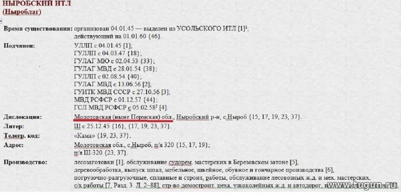 Так и не мог выяснить за какие такие преступления в самый разгар голода 48-49-ых годов моего одноного отца объявили КаэРом, дали стандартные 10 лет по совокупности разных частей статьи 58 и направили на исправление Ныроблаг, чуть севернее его последнего госпиталя. Одна из зон до сих пор в Ныробе действует. Остальные представляют собой развалины. Всего в Ныроблаге было пять зон и, за исключением состоящей из пленных немцев Ш-337, делились они по не совсем понятному признаку, ибо во всех присутствовали в тех или иных количествах и уголовники, и КаэРы ( КонтрРеволюционеры – контра, предатели Родины, политические…), а также мужчины, женщины и….и дети…).По состоянию на 12.04.52 г. в Ныроблаге отбывали срок 23 353 з/к, среди которых было 4172 женщины (больше, чем каждый шестой) и 4065 к/р (тоже практически каждый шестой). Дети по спискам не проходили. По словам и ныне живущей женщины, прошедшей через этот ИТЛ, на четырех зонах лагпункта было около тысячи детей в возрасте от 10 лет и менее.
